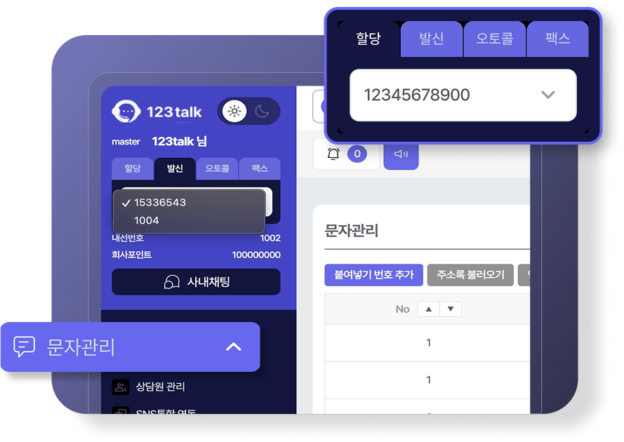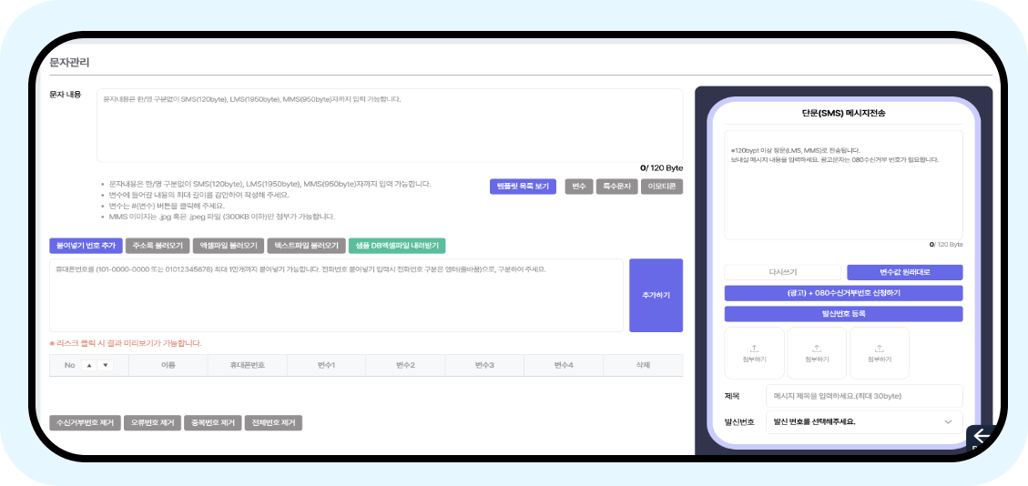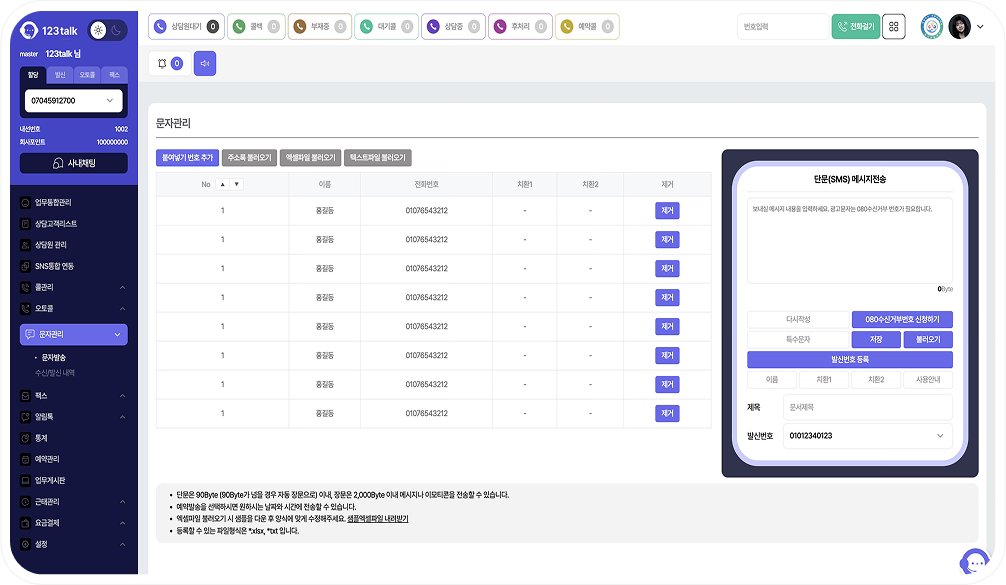 123톡 내에서 대량의 SMS, 알림톡 전송이 가능합니다.
