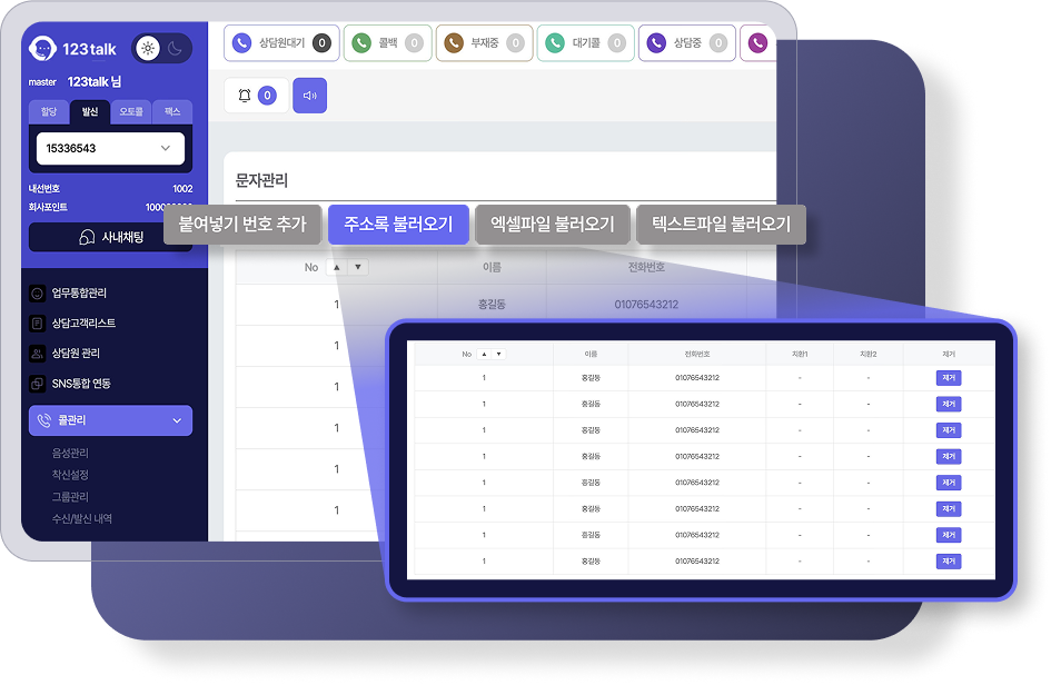 있는 고객리스트를 123톡에