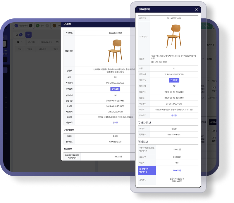 쇼핑몰에 따로 상담 따로 X