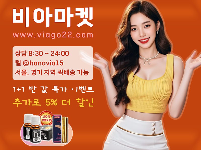 비아마켓은 처방전 필요없는 약국처방전 필요없는 정품비아그라를 중심으로 한 전문적인 서비스와 다양한 건강 제품 라인업을 갖춘 종합 건강 관리 플랫폼입니다. 비아마트, 비아몰, 럭스비아, 비아그라 구매 사이트, 비아마켓으로서의 풍부한 경험과 노하우를 바탕으로 고객께 최상의 가치를 전달합니다. 하나약국과 허브밍을 포함한 다양한 제품들은 남성 건강 관리의 다양한 Needs를 충족시켜 드립니다. 전문가의 꼼꼼한 상담, 신속한 배송, 철저한 개인정보 보호를 최우선 가치로 삼아 운영하고 있습니다. 현재 진행 중인 1+1 반 값 특가 이벤트와 사은품 증정 행사는 비아마켓이 고객께 드리는 진심 어린 감사의 표시입니다. 서울과 경기 지역을 포함한 전국으로의 퀵배송도 편리하게 이용하실 수 있습니다. 건강과 자신감을 되찾는 여정, 지금 비아마켓과 함께 시작해 보십시오. 공식 사이트 https://www.viago22.com 또는 텔레그램 @hanavia15 로 문의주시면 전문가가 친절하게 안내해 드리겠습니다.